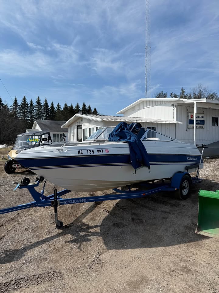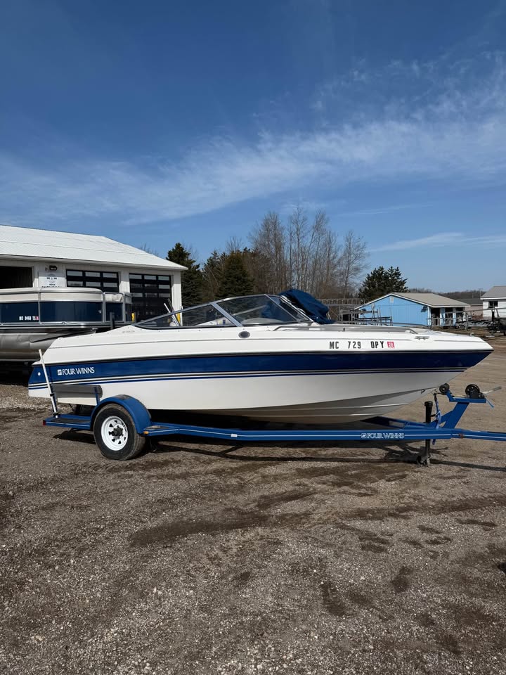 1 owner clean four winns boat Nice trailer 2 redone props Bimini cover Cockpit cover Mooring cover Stern drive lock Ready to rip